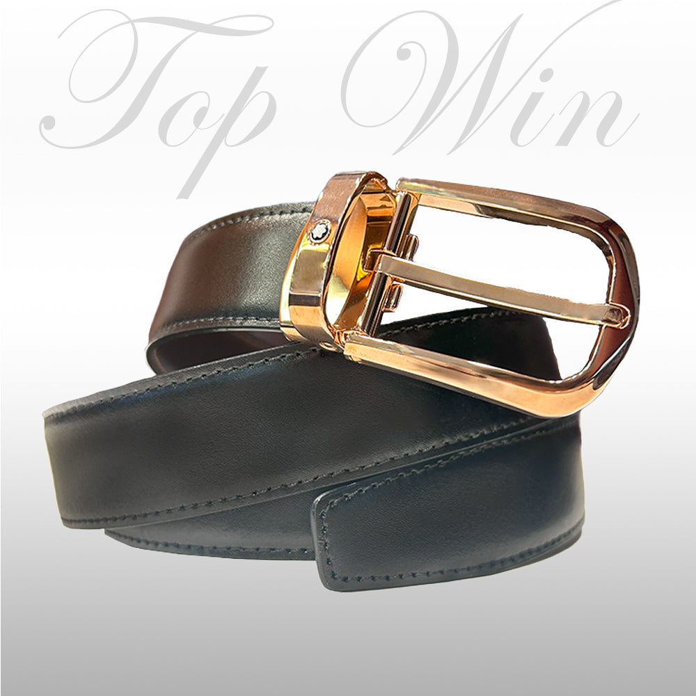 全新萬寶龍黑/棕雙面皮帶,鍍玫瑰金色馬蹄形搭扣,可自由調節,配套包裝全。