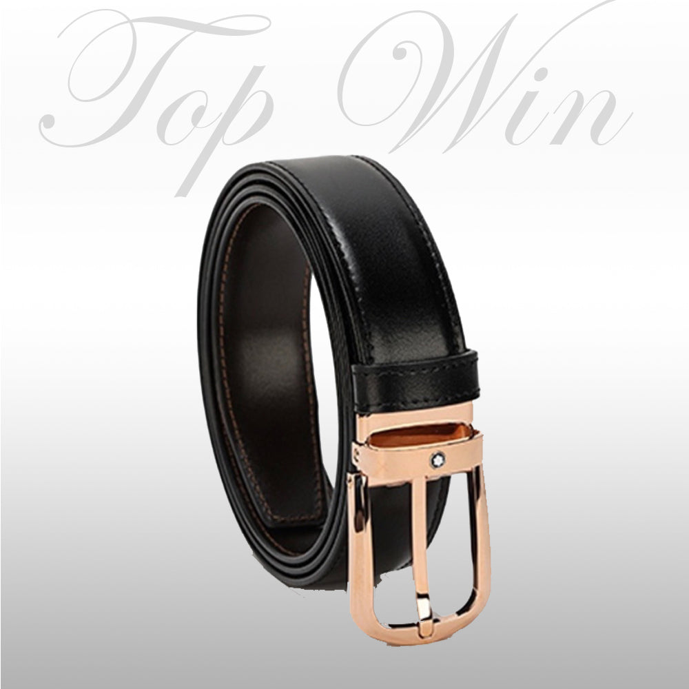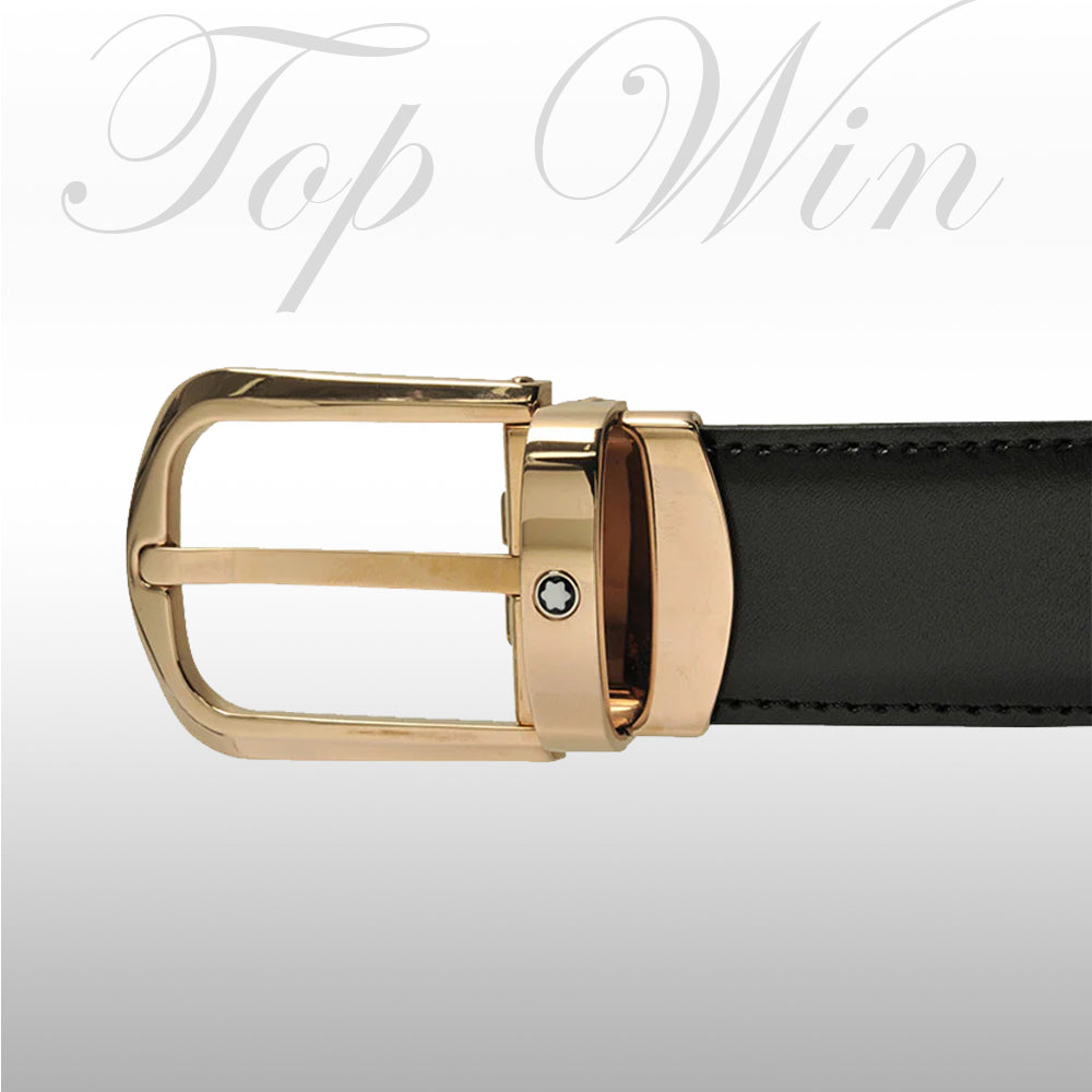 全新 Montblanc 萬寶龍 黑/棕雙面皮帶 鍍玫瑰金色馬蹄形搭扣 114413(特價)