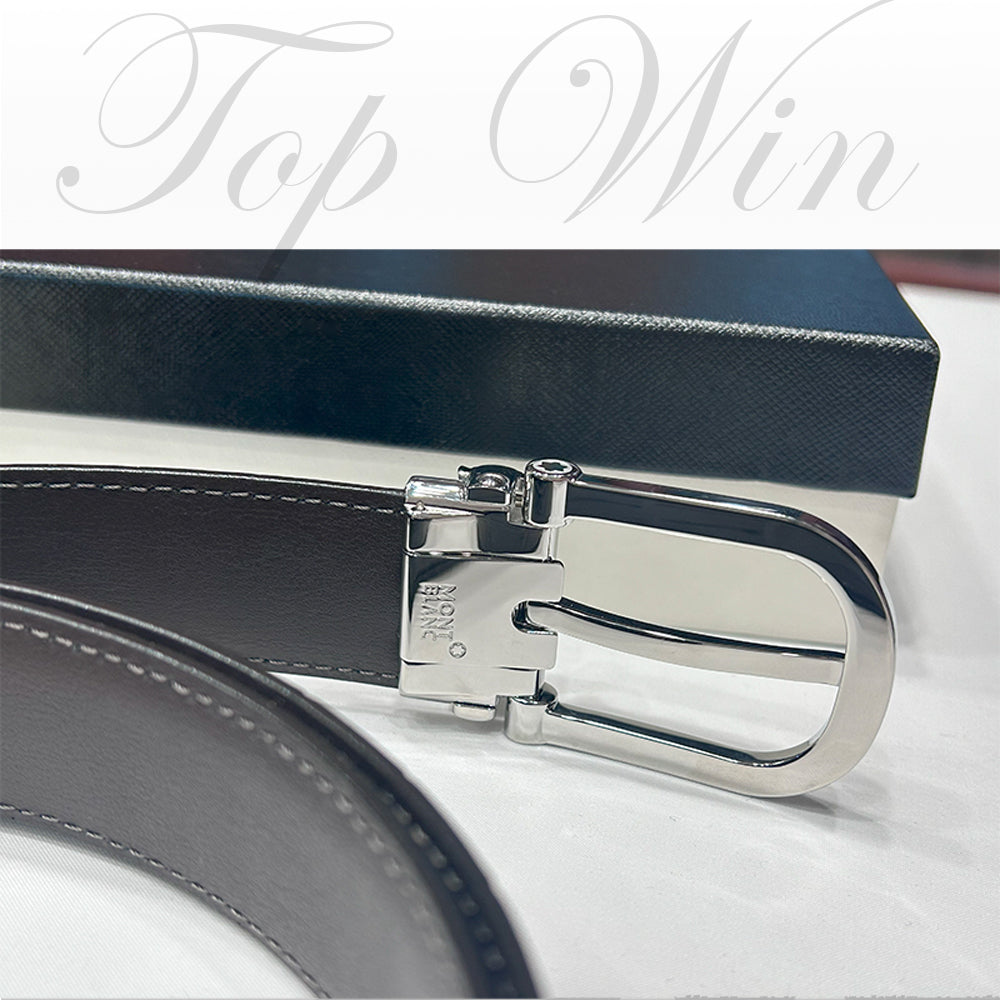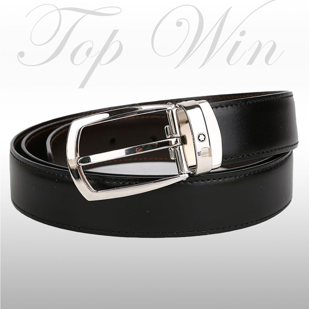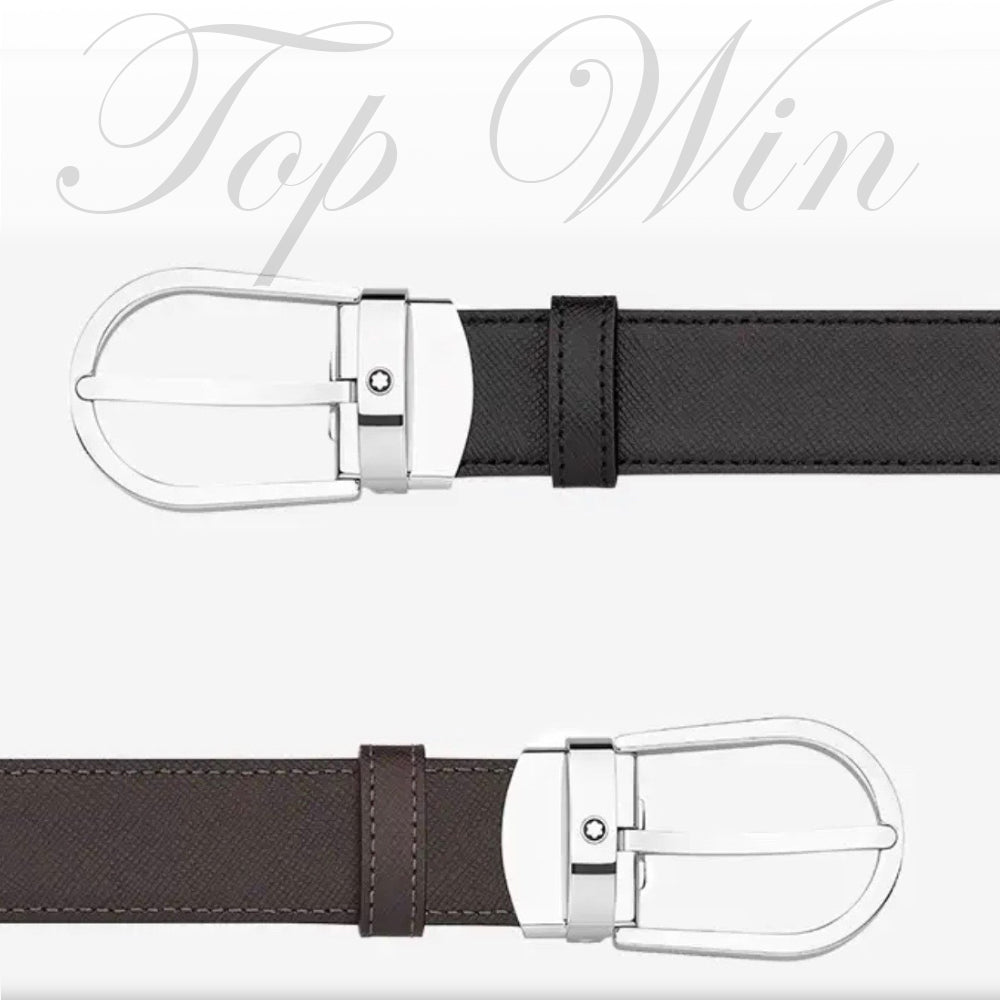 全新 Montblanc 萬寶龍 黑/棕雙面皮帶 鍍白金色馬蹄形搭扣 112960(特價)