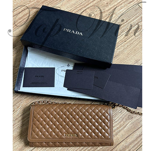 全新 Prada 普拉達 棕色鏈條絎縫包(特價)