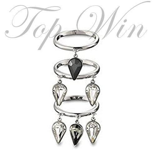 Swarovski women 1041051 size 55 - there are three rings plated in ruthenium - feature a combination of six hanging crystals four white, one dark green and one light green in the shape of a drop - to-wear together or even individually. Comes with original box & certificate.