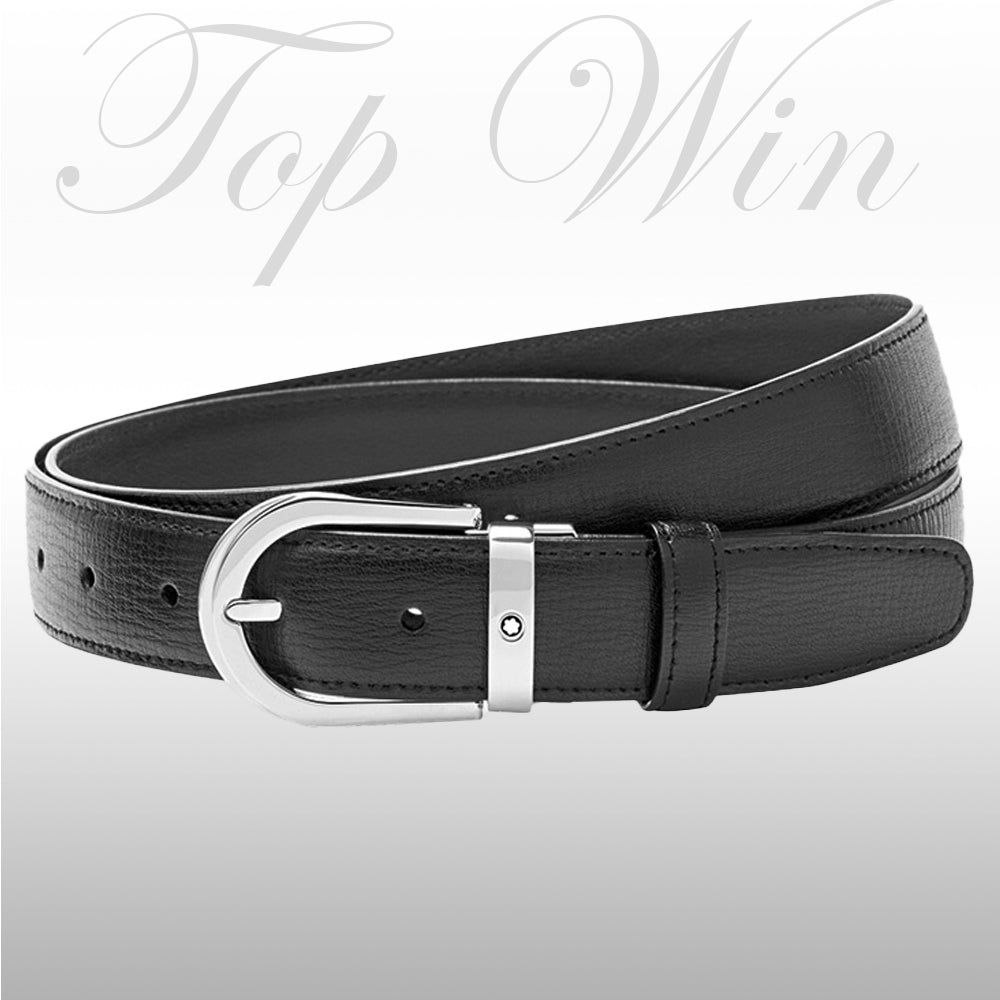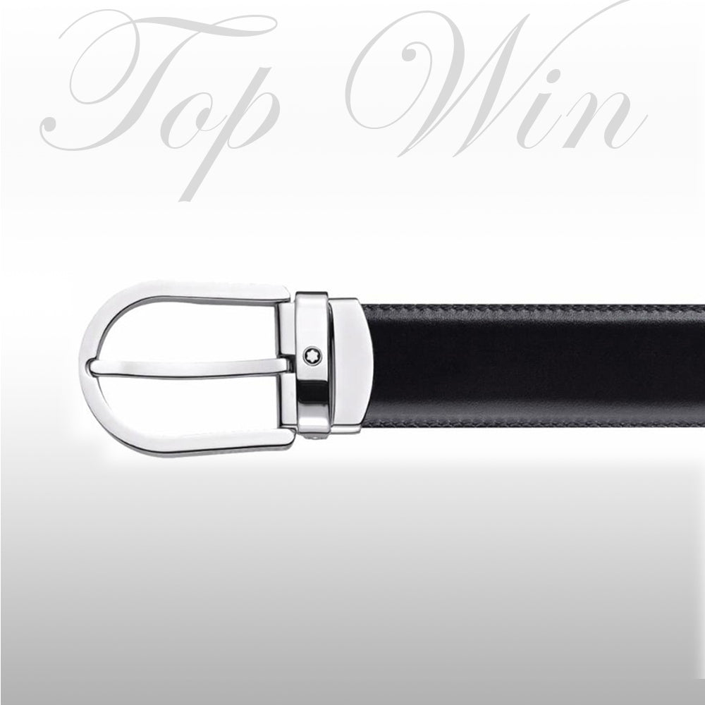 全新 Montblanc 萬寶龍 黑色皮帶 鍍白金色搭扣 114416(特價)