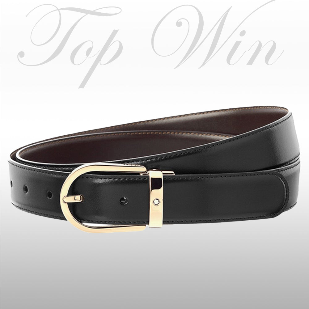 全新萬寶龍經典黑/棕雙面皮帶,金色搭扣,可自由調節,配套包裝全。